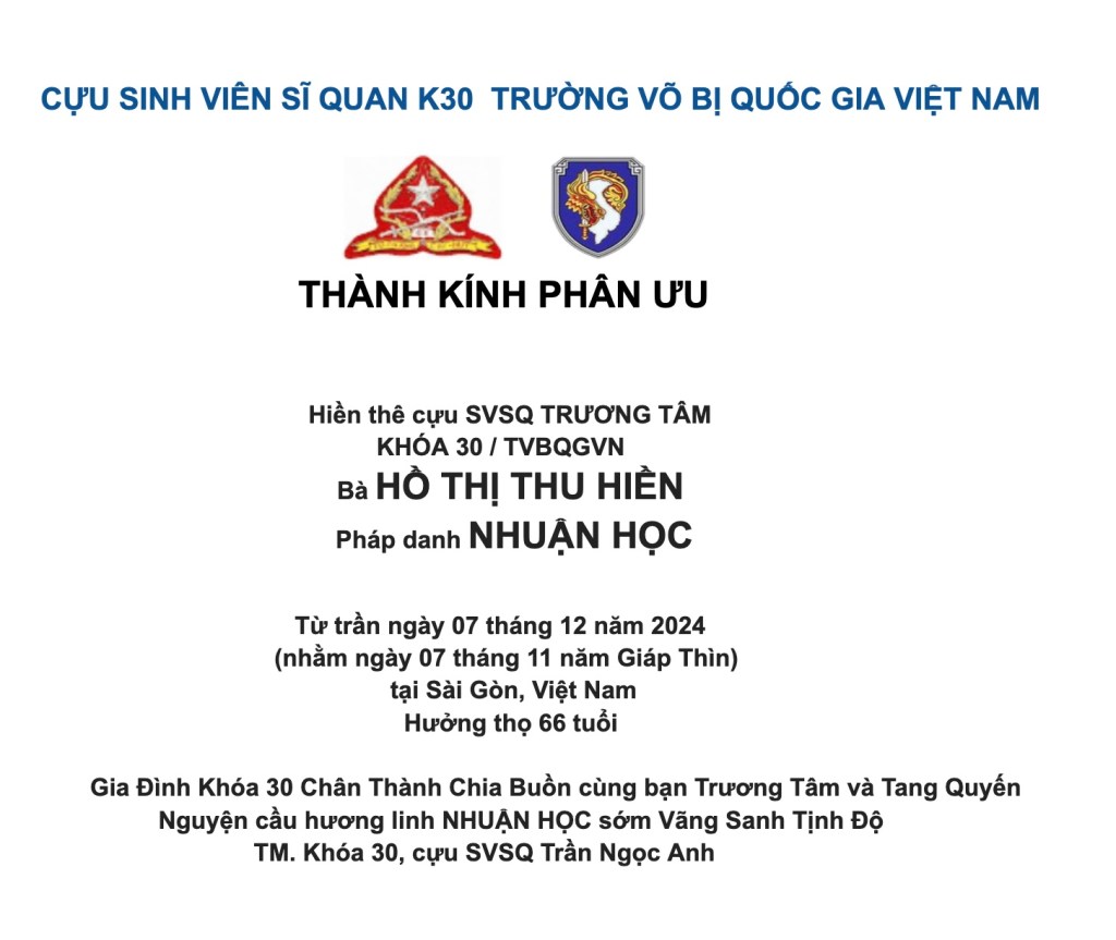 Danh Sách Các Bạn K30 Đã Từ Trần