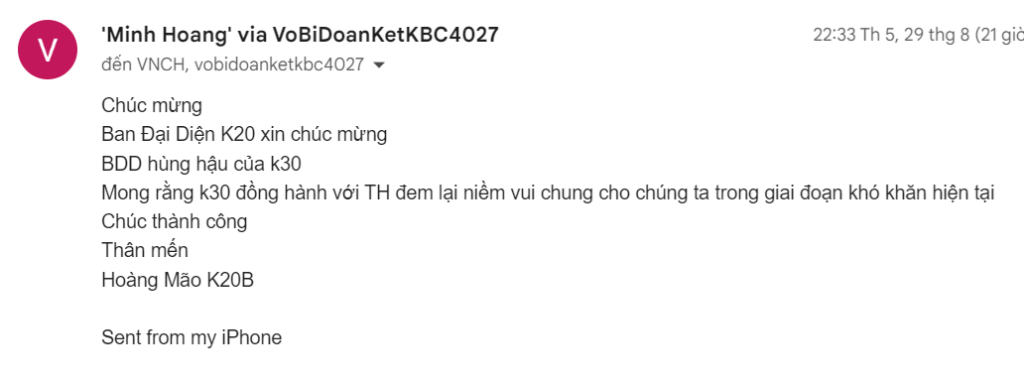 Điện thư của NT Hoàng Mảo K 20
